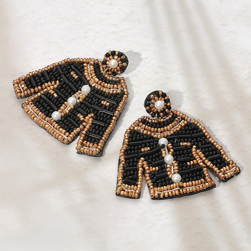 Details • Size : 2" X 2" • Post Back • Playful statement earrings designed in a detailed sweater jacket silhouette with layered texture and dimensional accents. These novelty earrings add charm and personality to seasonal outfits, gift assortments, and boutique collections, making them ideal for trend-driven displays, fashion storytelling, and eye-catching accessory edits. • Lead and Nickel Compliant • Made In India