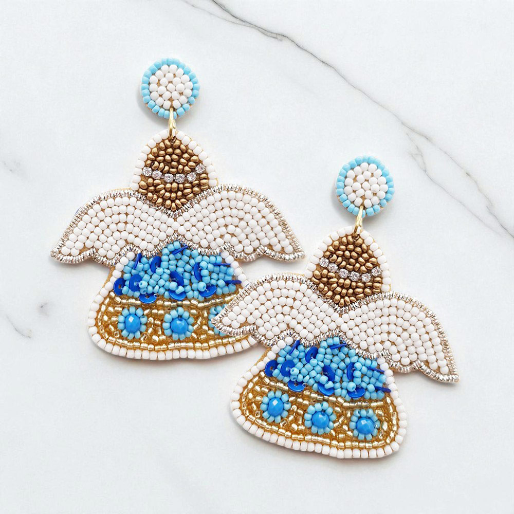 7PCS - Metal Flip Flop Angel Heart Dolphin Charm Pointed Various Beads Beaded Stretch Multi Layered Bracelet