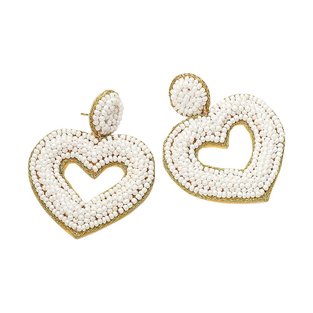Details • Size : 1.75" X 2.3" • Post Back • Statement open heart drop earrings designed with intricate beaded texture and a lightweight silhouette. Perfect for boutiques seeking romantic statement accessories, these earrings elevate everyday outfits, event looks, and seasonal collections with a bold yet wearable design that appeals to trend-focused customers. • Lead and Nickel Compliant • Made In India