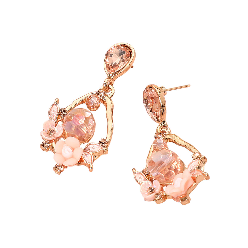 Floral Faceted Gem Embellished Teardrop Dangle Earrings