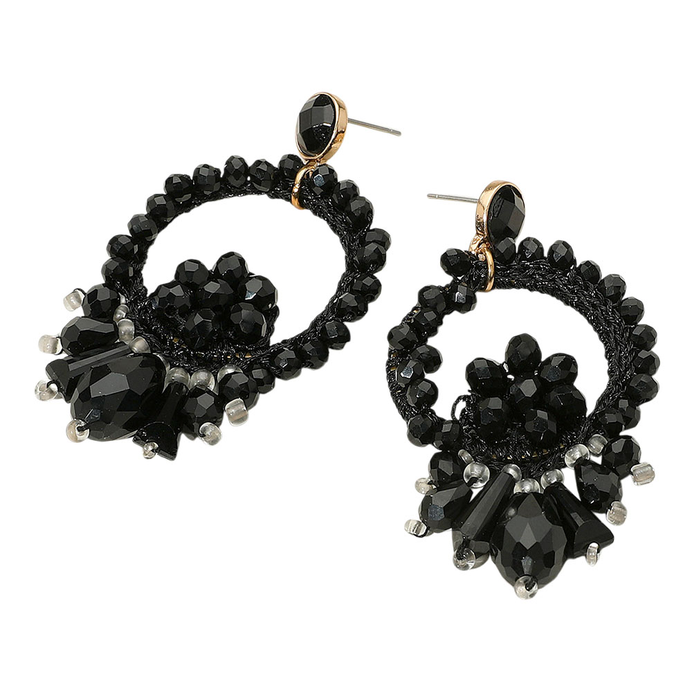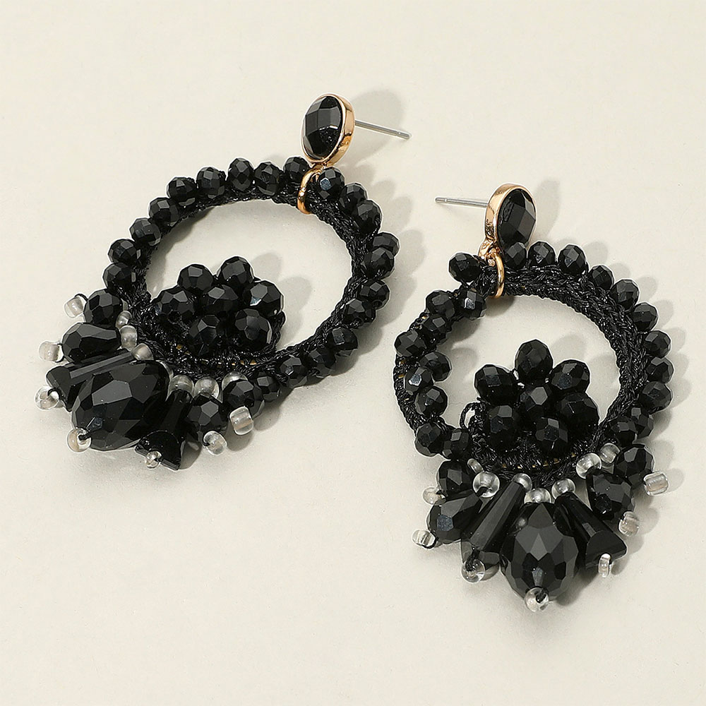 • Elevate your look with beaded hoop drop earrings featuring faceted accents and intricate detailing. Bold yet elegant, these statement earrings bring texture, shine, and modern flair, making them perfect for parties, evenings out, or standout everyday wear.