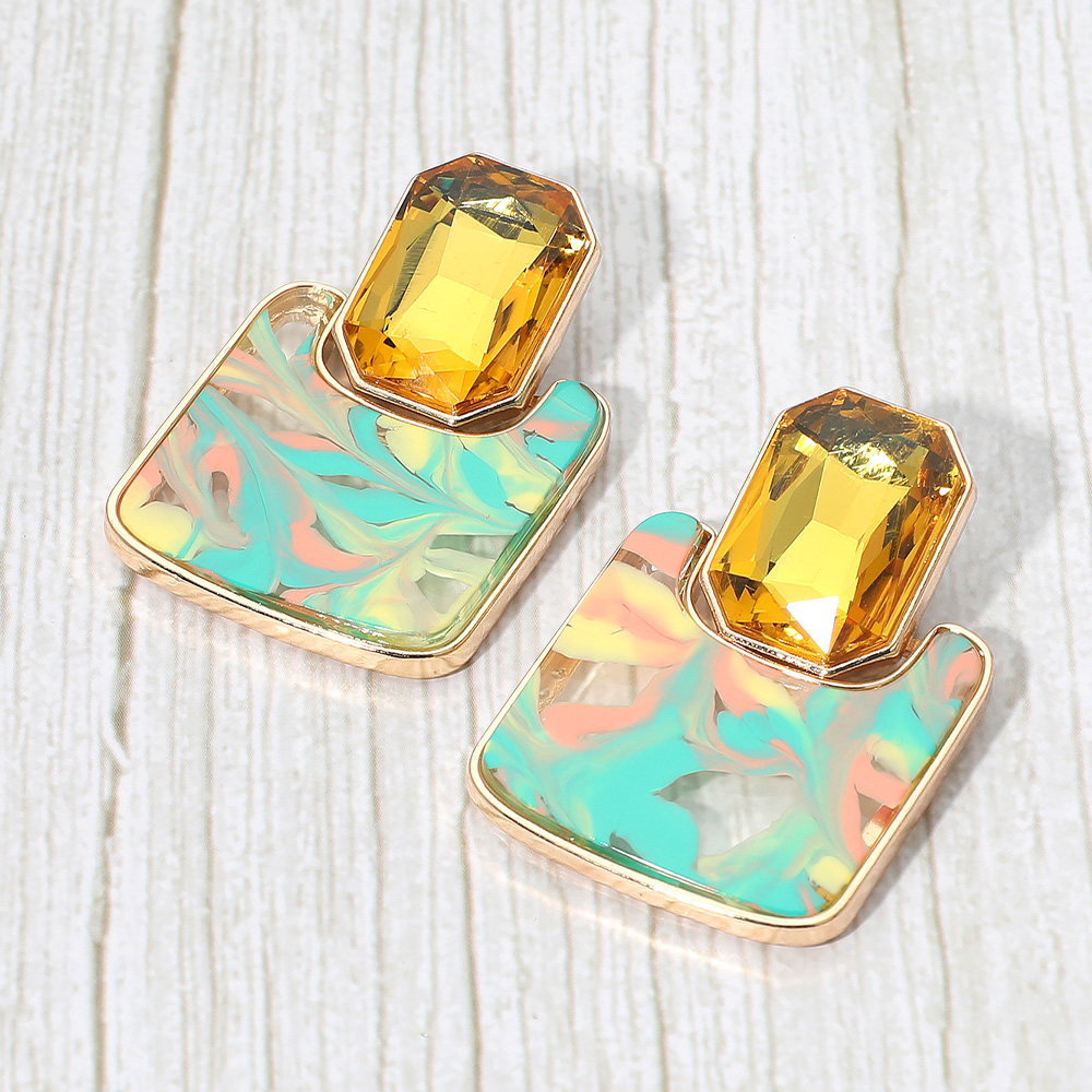 Geometric Stone Accent Printed Resin Plate Drop Earrings