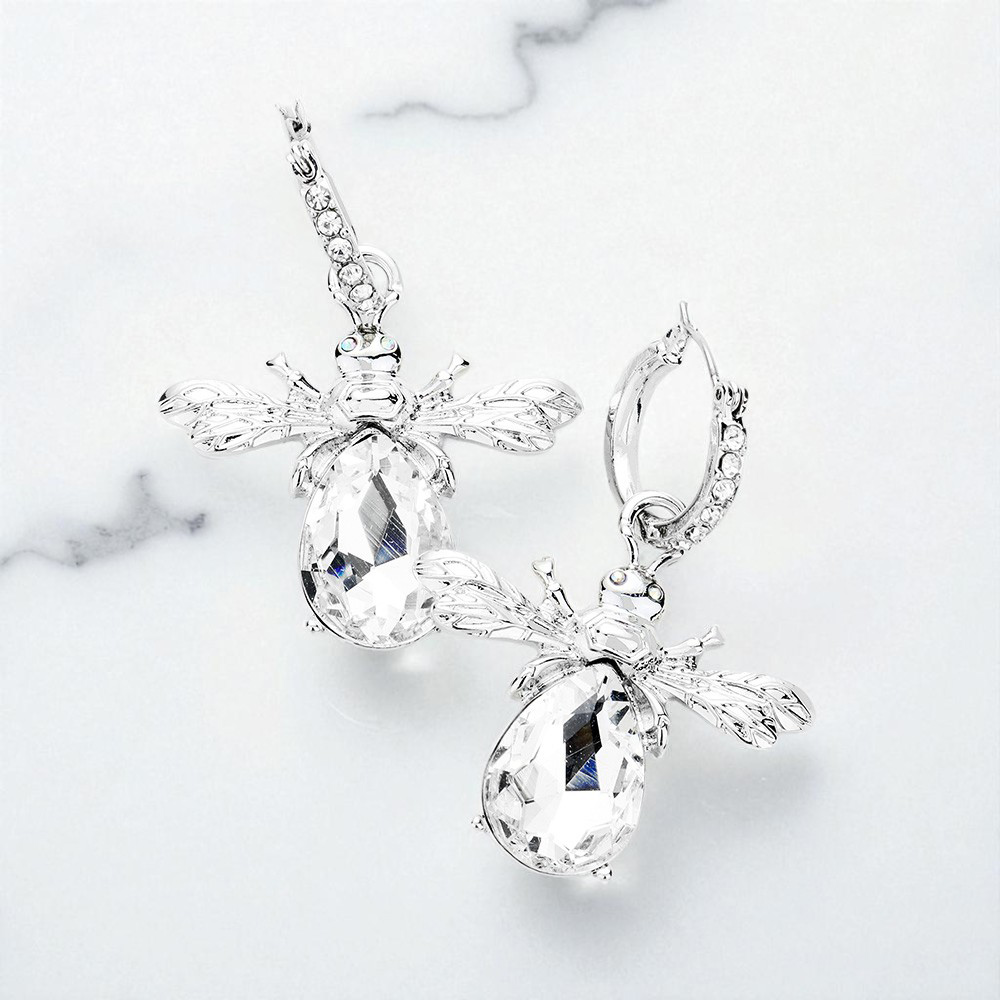 White Gold Dipped CZ Stone Paved Triple Butterfly Accent Cluster Drop Earrings