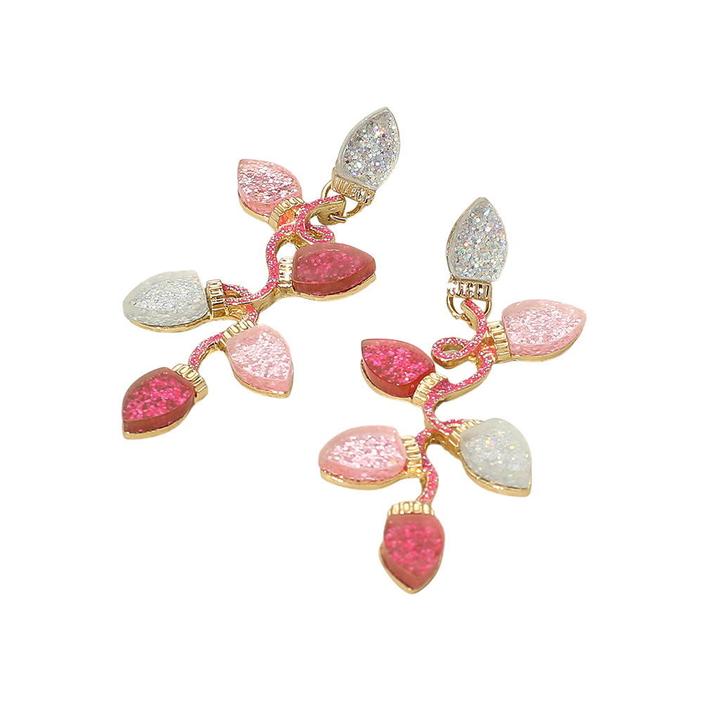Glitter Resin Holiday Light Bulb Drop Earrings Glitter Resin Holiday Light Bulb Drop Earrings