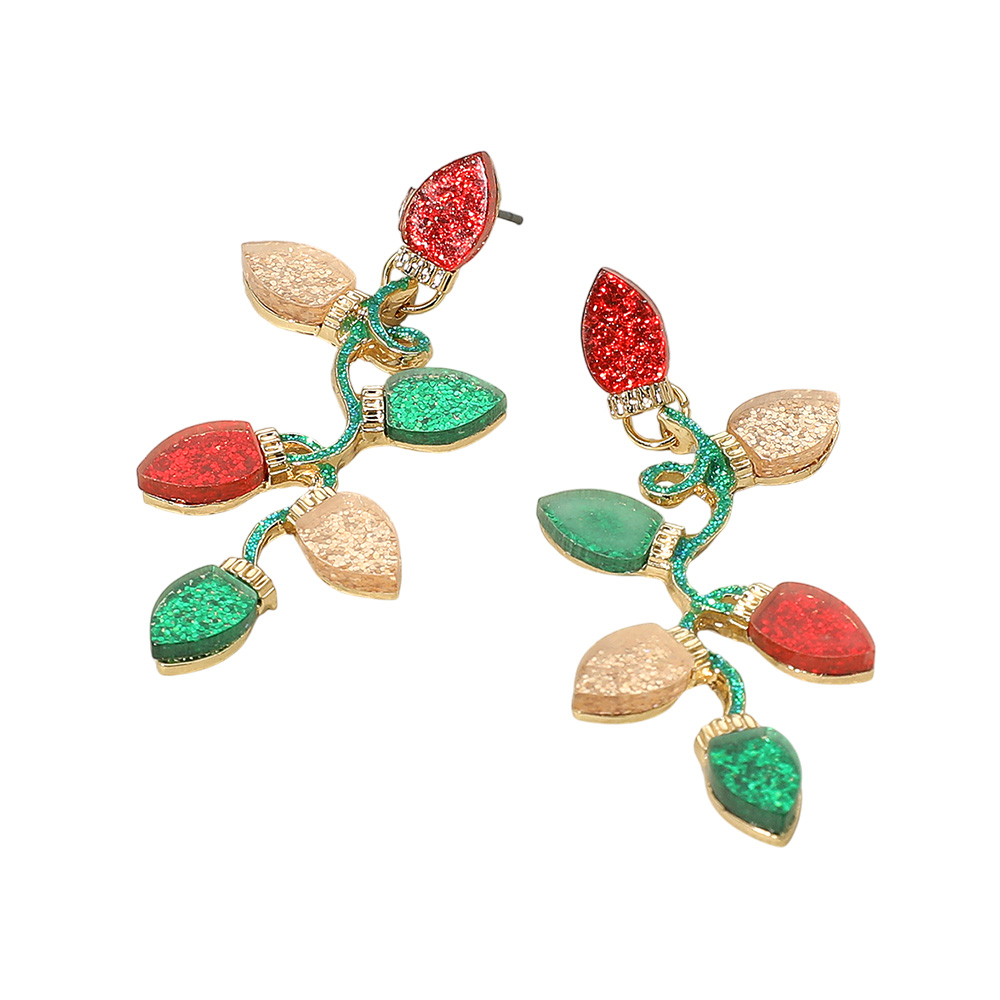 Glitter Resin Holiday Light Bulb Drop Earrings Glitter Resin Holiday Light Bulb Drop Earrings