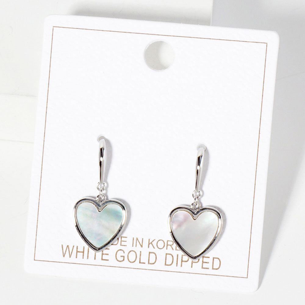 • Elegant heart dangle earrings featuring a smooth heart-shaped drop with a mother of pearl style finish. Lightweight hook design adds effortless charm for daily wear, special occasions, or gifting. A timeless accessory with a soft, romantic touch.