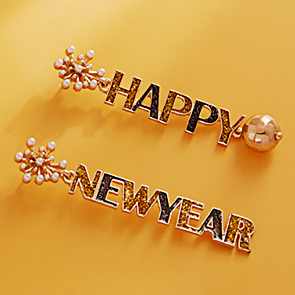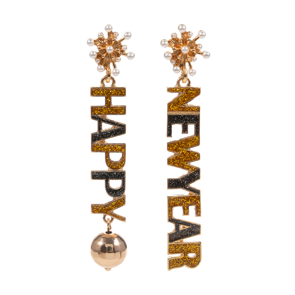Details • Size : 0.5" X 2.5" • Titanium Post Back • Celebrate in style with these glitter letter drop earrings featuring festive “HAPPY” and “NEW YEAR” designs. Sparkling accents and playful dangles make them the perfect statement accessory for parties and celebrations, adding fun and glamour to every festive outfit. • Hypoallergenic • Lead and Nickel Compliant