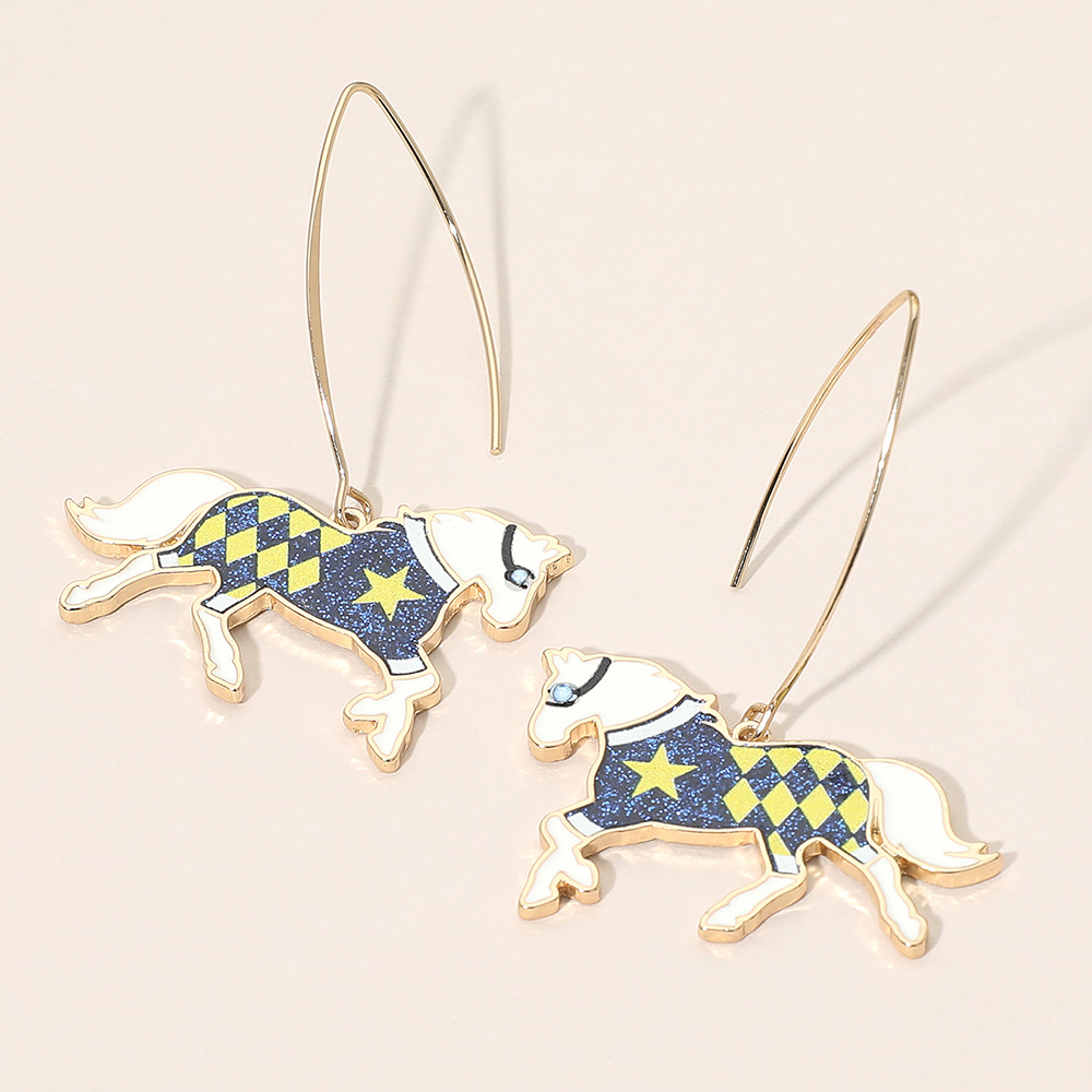 • Whimsical horse hook drop earrings featuring a playful silhouette design that brings movement and personality to any jewelry display. Lightweight and easy to wear, these novelty earrings are perfect for gift shops, western-inspired assortments, seasonal promotions, and fun fashion collections. A charming statement piece that adds character and visual interest to everyday styling and themed displays.