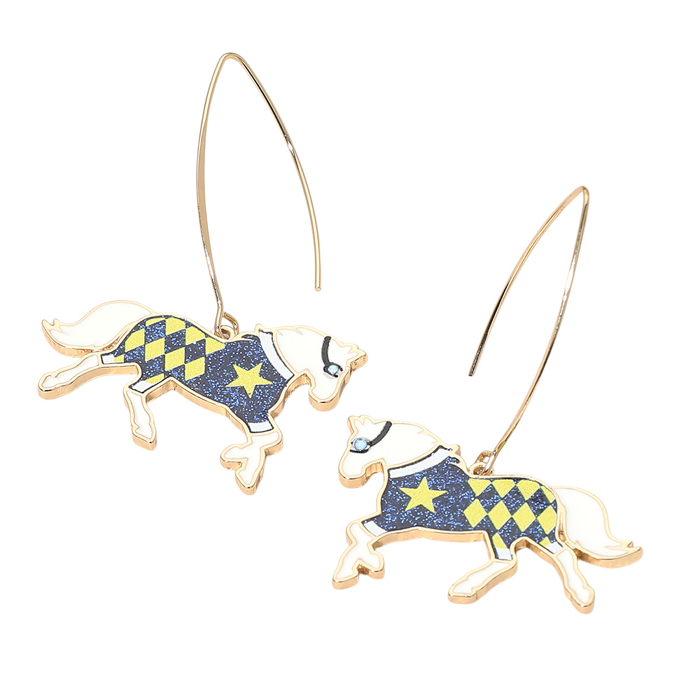 Horse Charm Drop Long Earrings