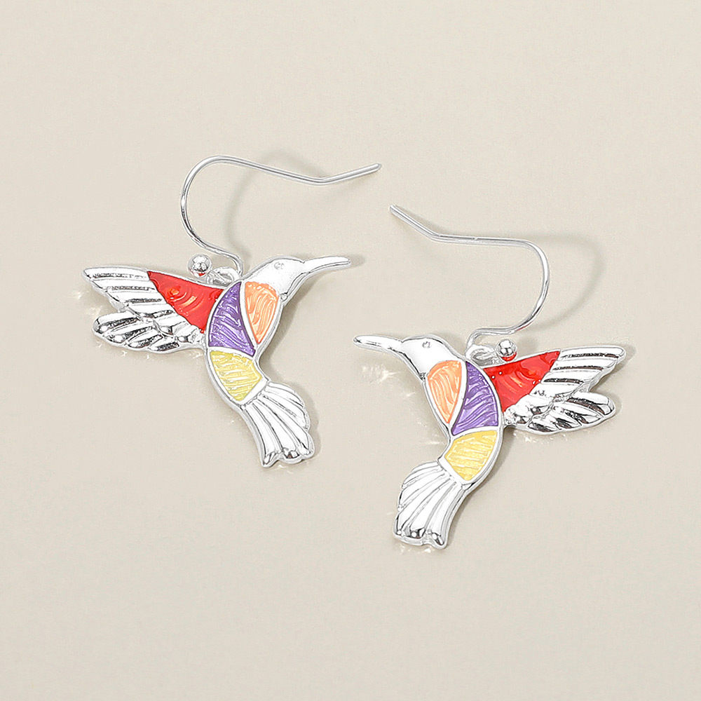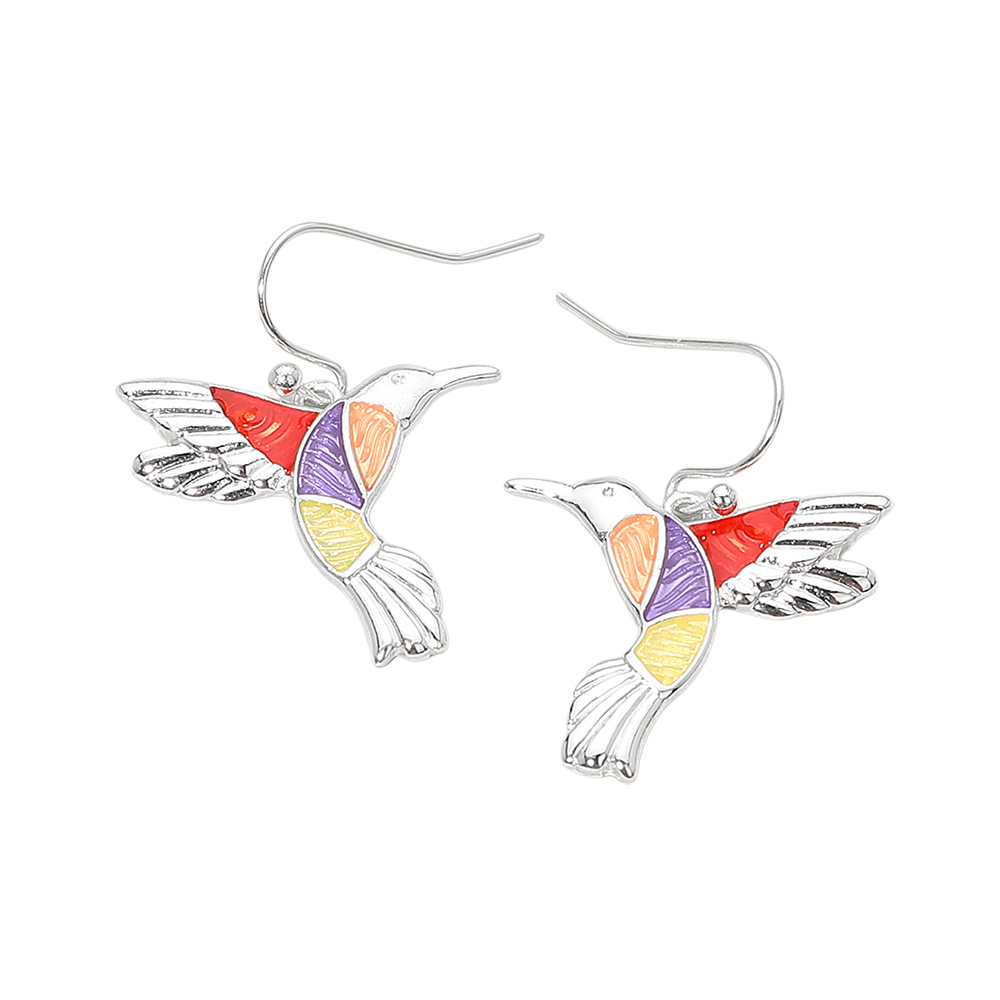 • Delicate hummingbird charm drop earrings featuring a graceful bird silhouette with detailed wings and lightweight movement. Perfect for everyday wear, spring outfits, nature-inspired styling, and thoughtful gifting, these earrings add a touch of elegance, whimsy, and timeless charm to any look.