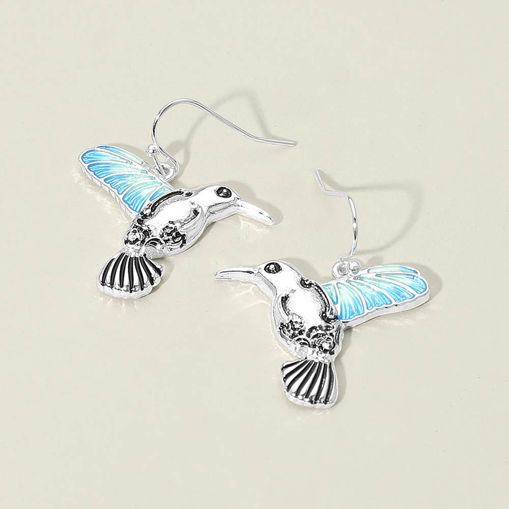 • These charming drop earrings feature a detailed hummingbird design with textured wings and graceful movement. Lightweight and easy to wear, they add a nature-inspired touch to everyday outfits or seasonal collections. Ideal for gift assortments, boutique displays, and customers who love whimsical animal motifs with delicate, eye-catching detail.