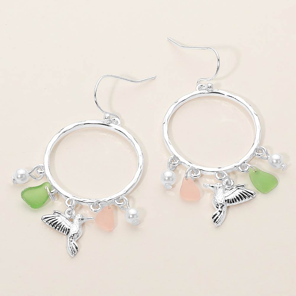 Hummingbird Sea Glass Charm Drop Open Ring Dangle Earrings Hummingbird Sea Glass Charm Drop Open Ring Dangle Earrings