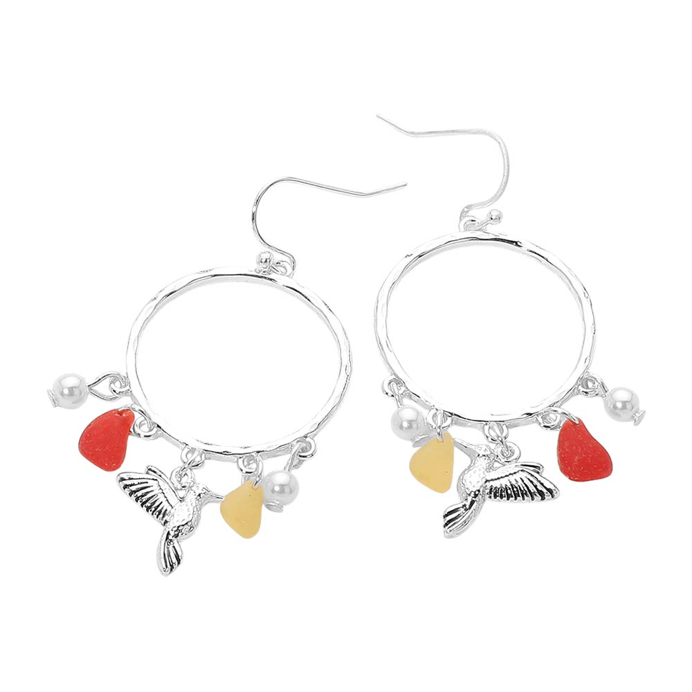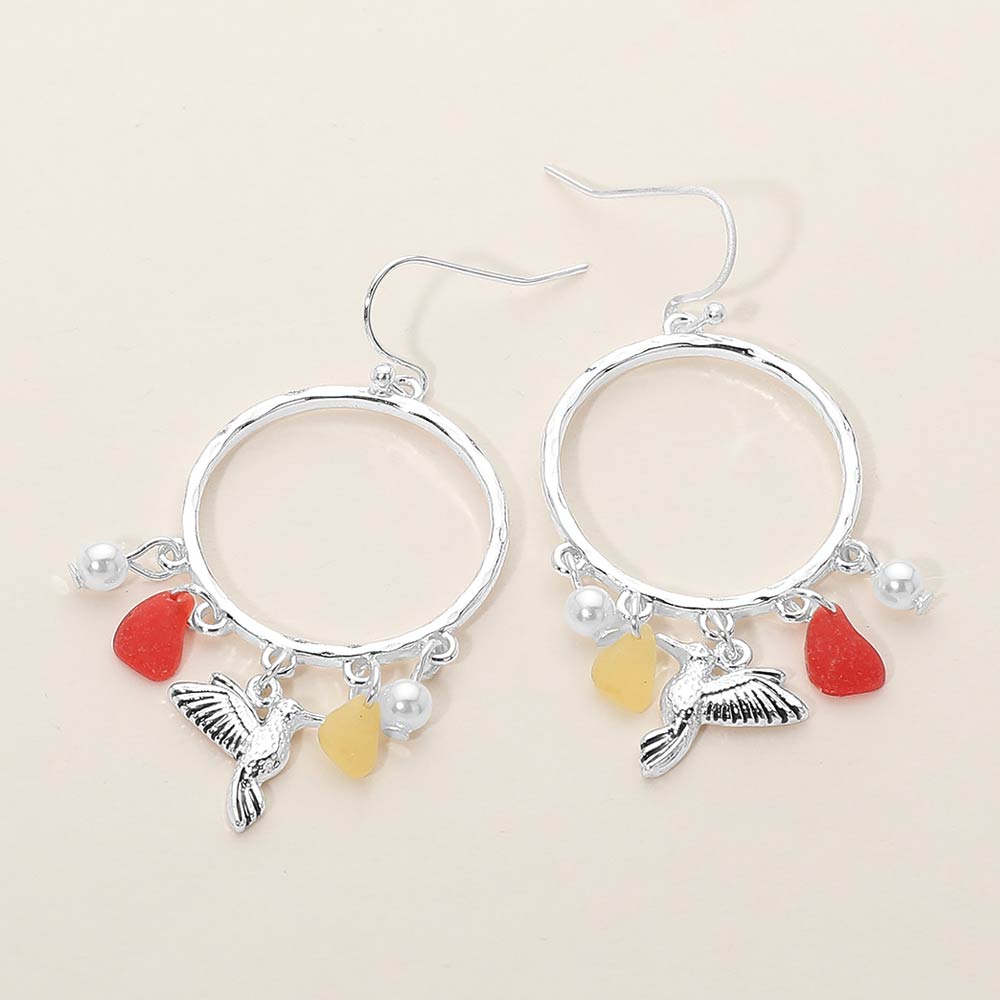Hummingbird Sea Glass Charm Drop Open Ring Dangle Earrings Hummingbird Sea Glass Charm Drop Open Ring Dangle Earrings