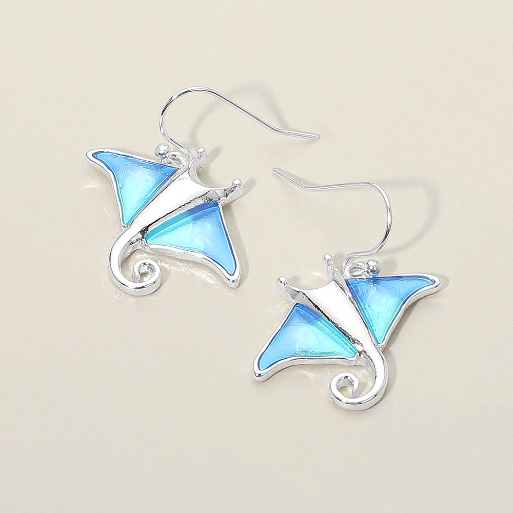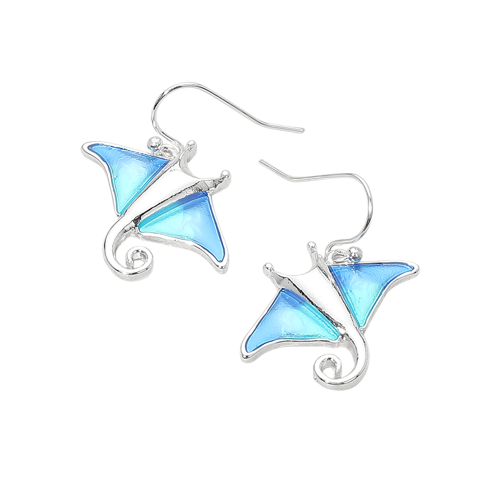 • Whimsical manta ray dangle earrings inspired by ocean life and coastal charm. A playful yet elegant accessory with fluid movement, ideal for beach boutiques, resort shops, summer collections, gift stores, and sea-inspired jewelry displays.