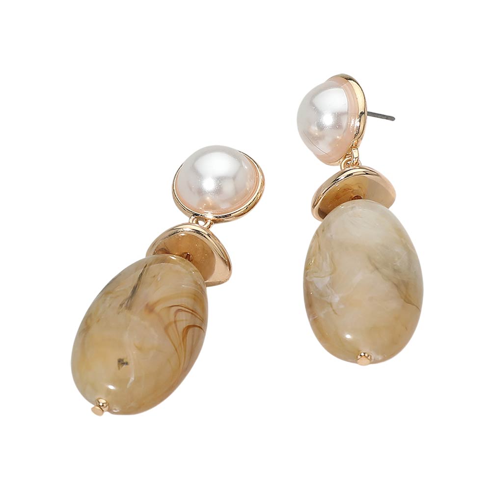 Marbled Oval Resin Pebble Drop Earrings