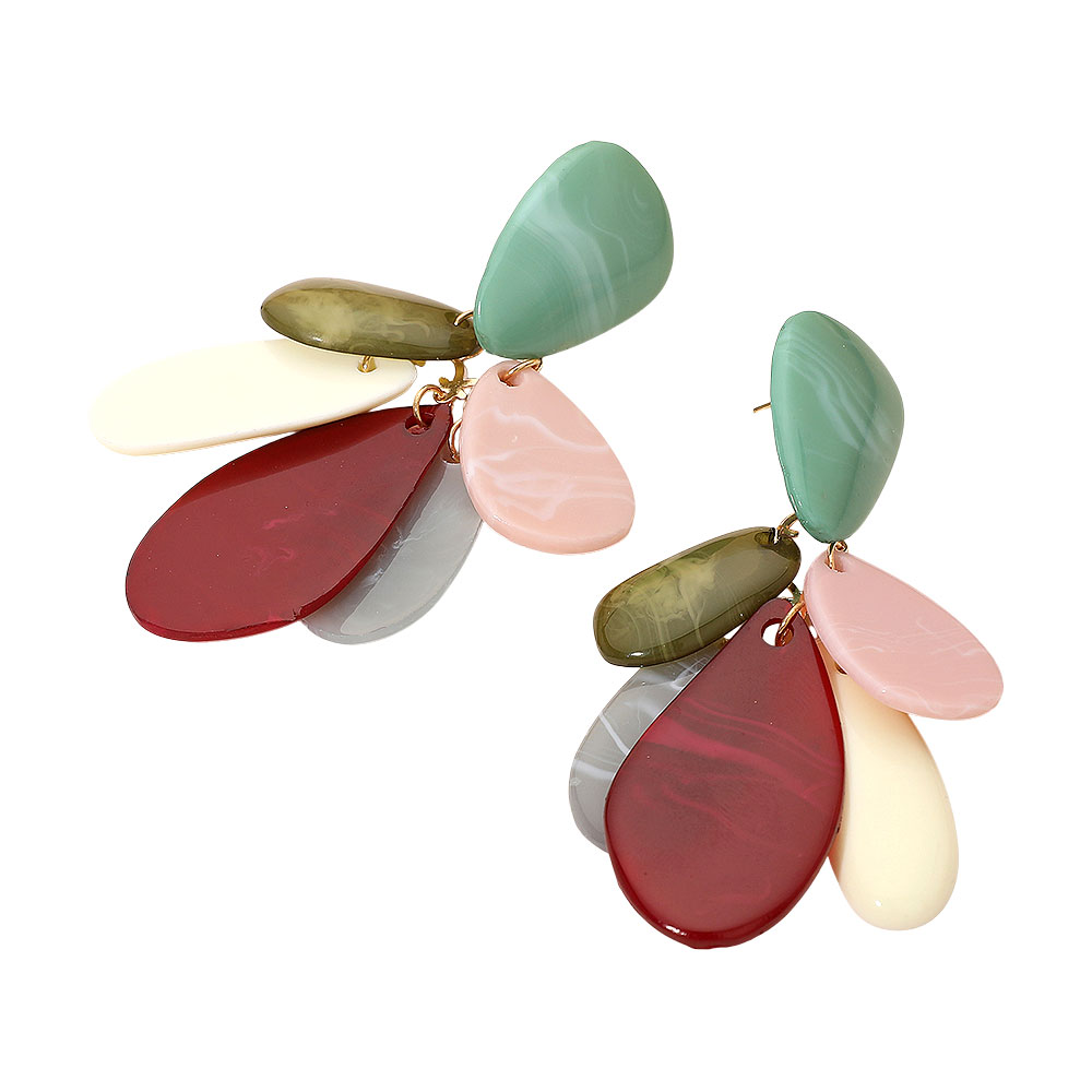 Details • Size : 1.4" X 3.5" • Post Back • Stand out with these abstract teardrop statement earrings designed with layered, marbled drops for a bold artistic flair. Perfect for adding personality and vibrance to any outfit, these earrings bring a modern, playful touch to your everyday or special occasion look. • Lead and Nickel Compliant