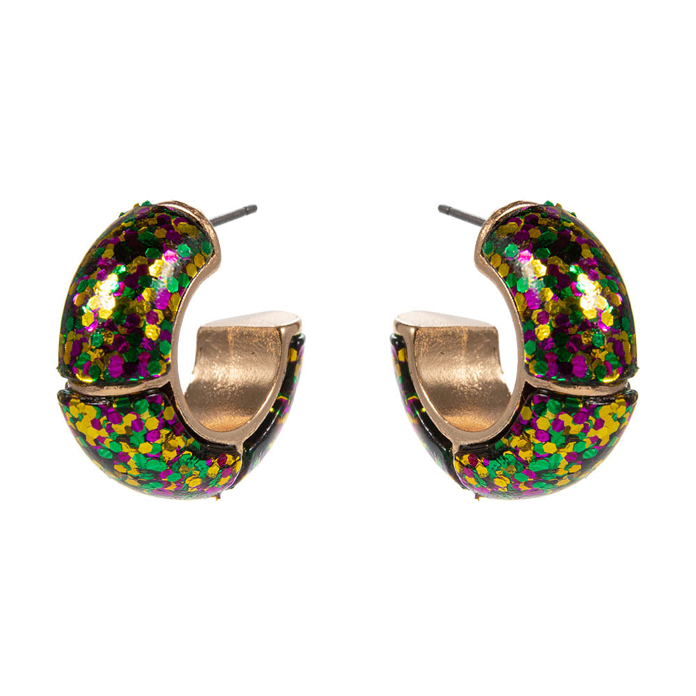 Mardi Gras Confetti Glitter Hoop Earrings Mardi Gras Confetti Glitter Hoop Earrings