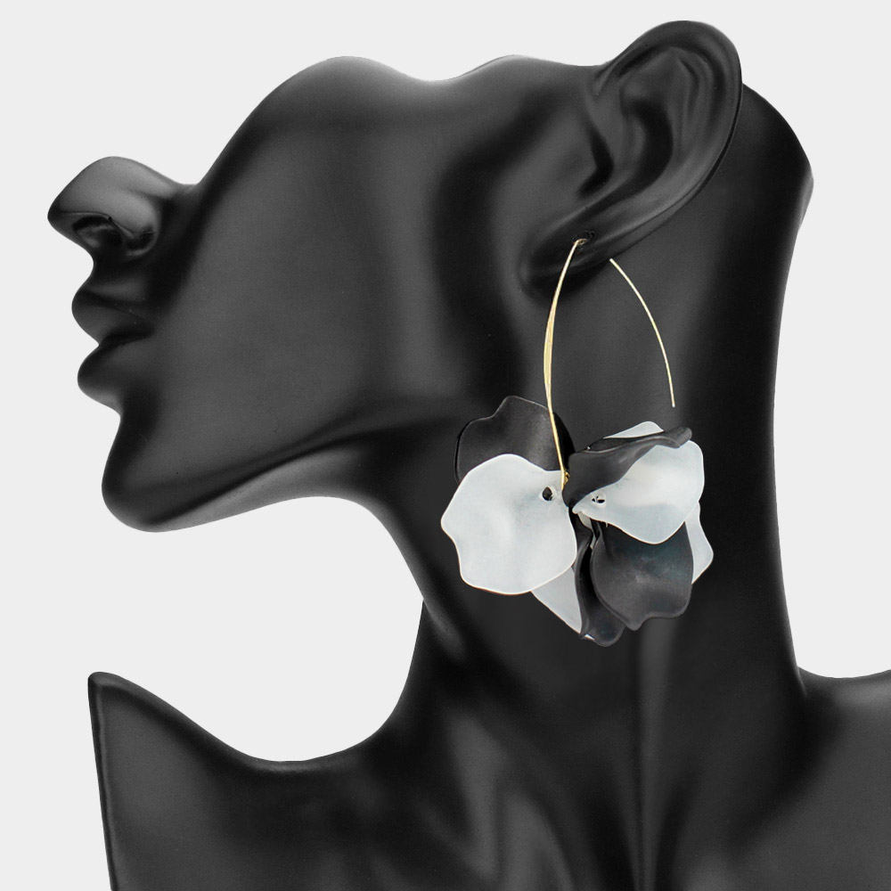 • Elevate your look with this striking floral hoop earring featuring a large layered petal design. Lightweight yet impactful, it's perfect for making a chic, artistic statement at any event or outing.