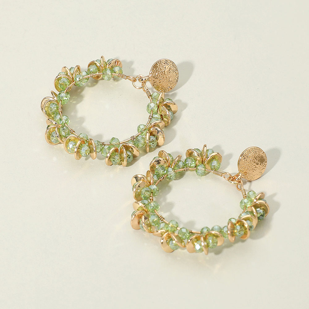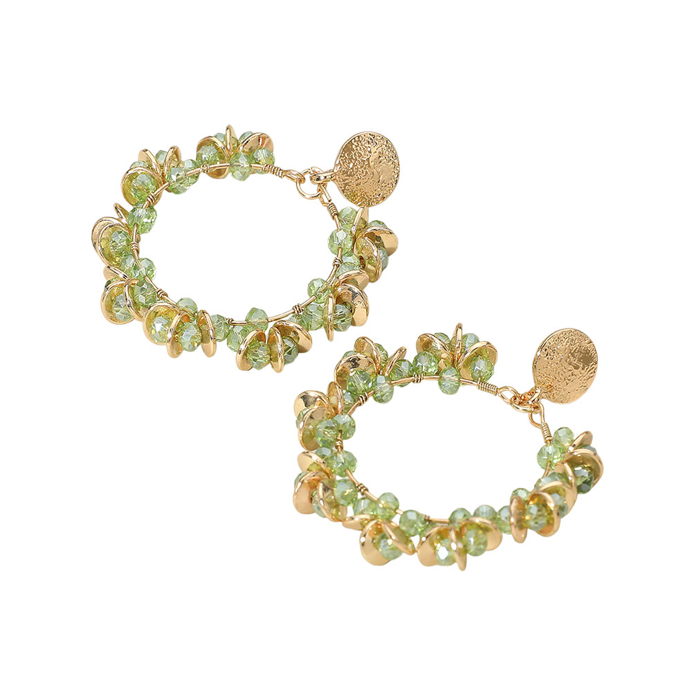 Metal Disc Faceted Beaded Open Ring Dangle Earrings Metal Disc Faceted Beaded Open Ring Dangle Earrings