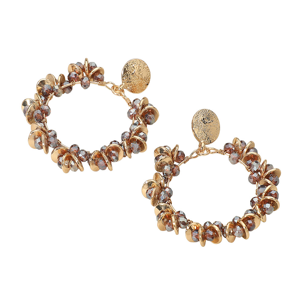 Metal Disc Faceted Beaded Open Ring Dangle Earrings Metal Disc Faceted Beaded Open Ring Dangle Earrings