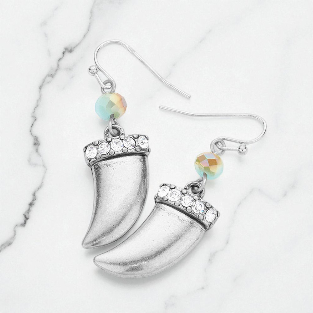 Metal horn & faceted bead earrings