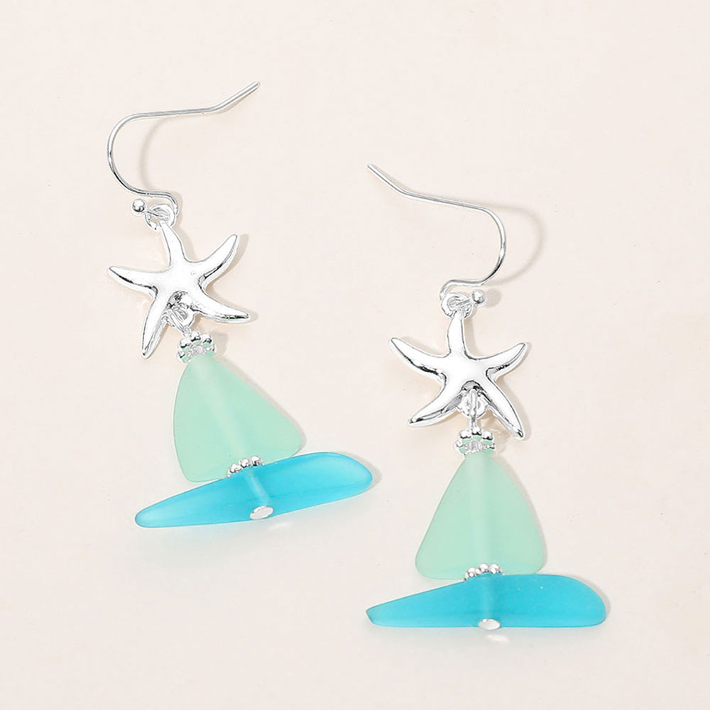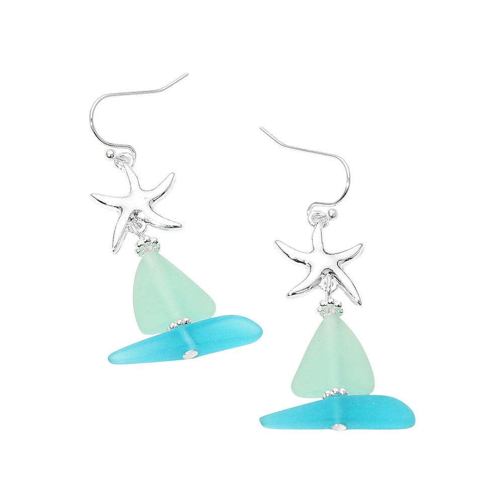 Metal Starfish Sea Glass Sail Link Drop Dangle Earrings
