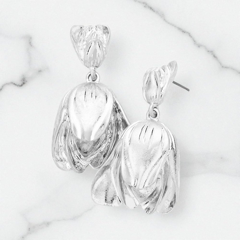 Mardi Gras Felt Back Flower Pointed Seed Beaded Round Dangle Earrings
