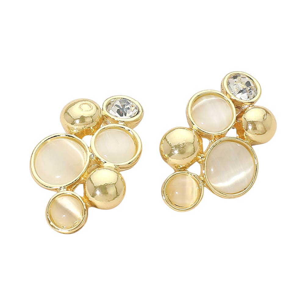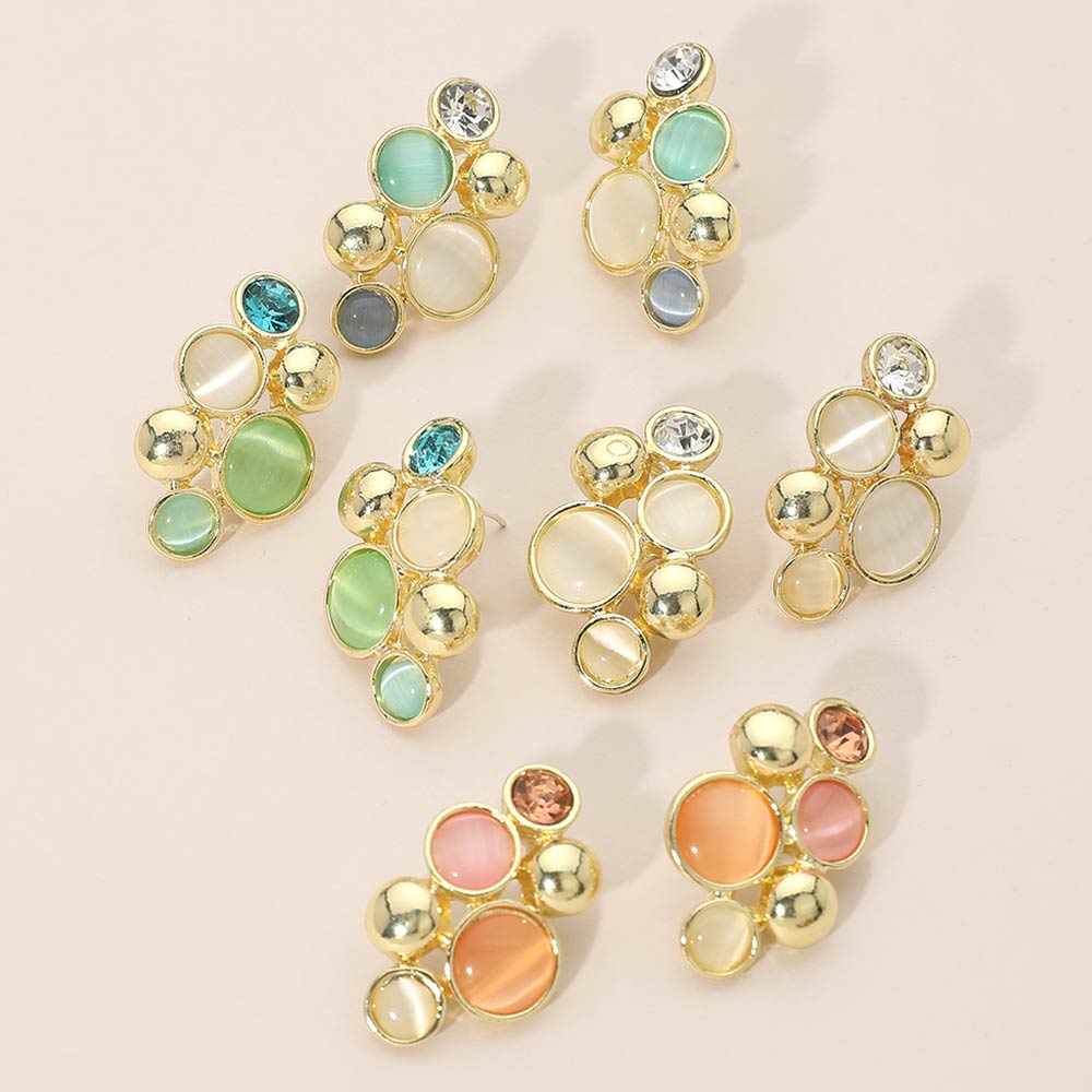 • These cluster stud earrings feature a balanced mix of smooth and faceted accents arranged in a modern, dimensional design. Easy to style for everyday wear or special occasions, they add subtle shine and visual interest without overpowering the look. A versatile, gift-ready option for boutiques and curated accessory collections.