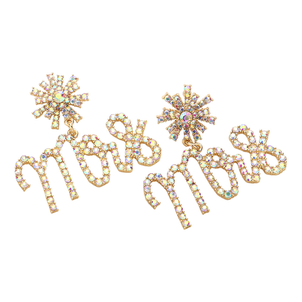 Mrs Rhinestone Embellished Message Dangle Earrings