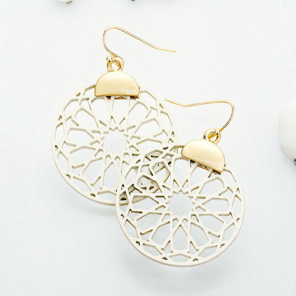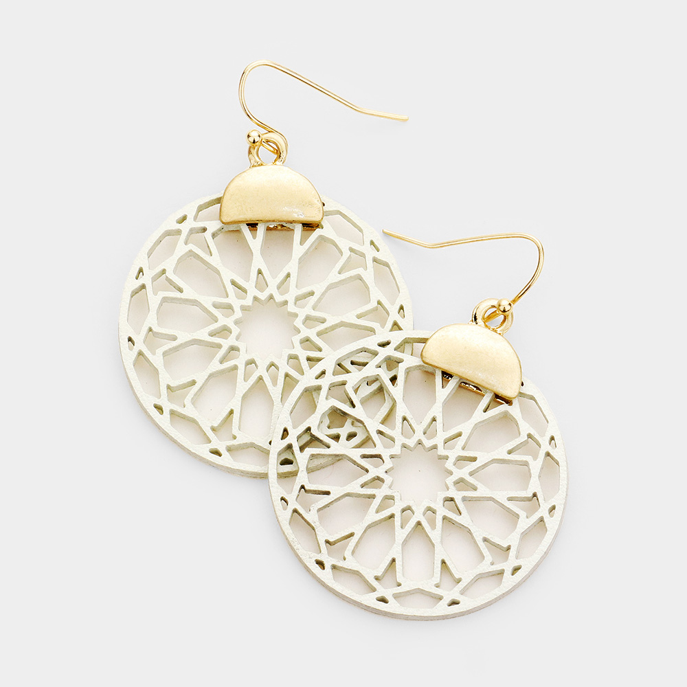 Half Hoop Filigree Metal Round Lucite Bead Dangle Earrings