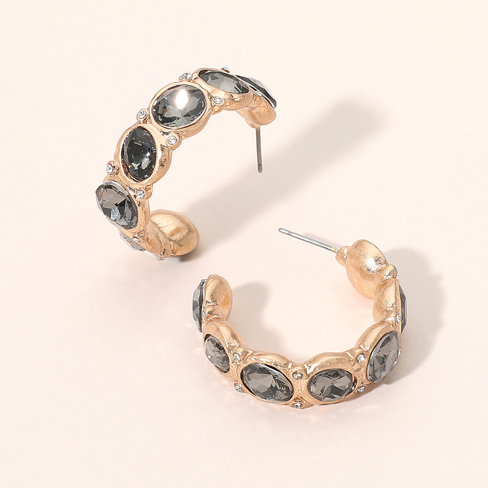 Oval Round Faceted Stone Embellished Open Hoop Earrings Oval Round Faceted Stone Embellished Open Hoop Earrings Oval Round Faceted Stone Embellished Open Hoop Earrings