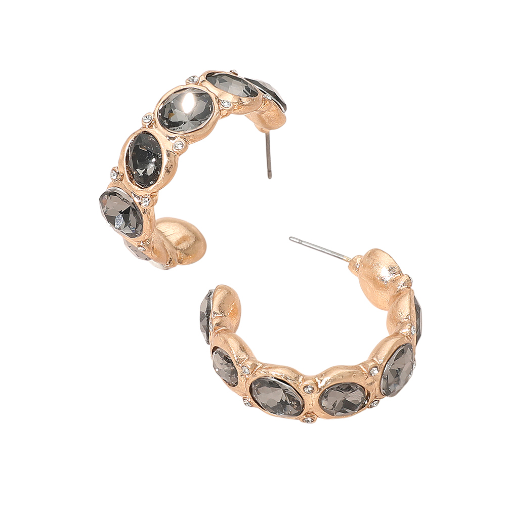 • Make a glamorous statement with these Oval Round Faceted Stone Embellished Open Hoop Earrings. Designed with multiple faceted stones set in a bold curved frame, these earrings capture the light beautifully, adding effortless sophistication to both day and evening looks.