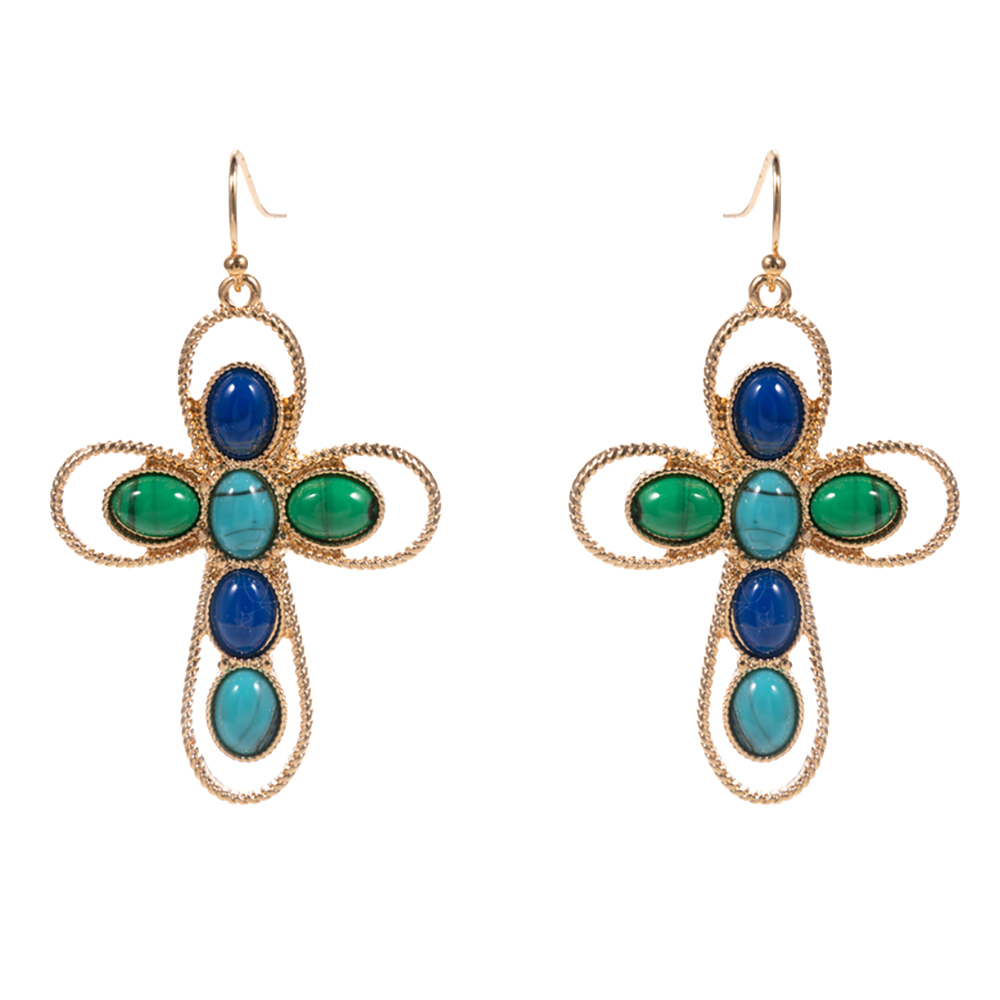 Oval Stone Accent Cross Dangle Earrings Oval Stone Accent Cross Dangle Earrings