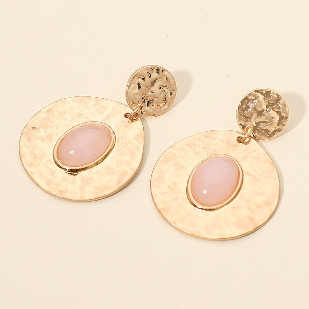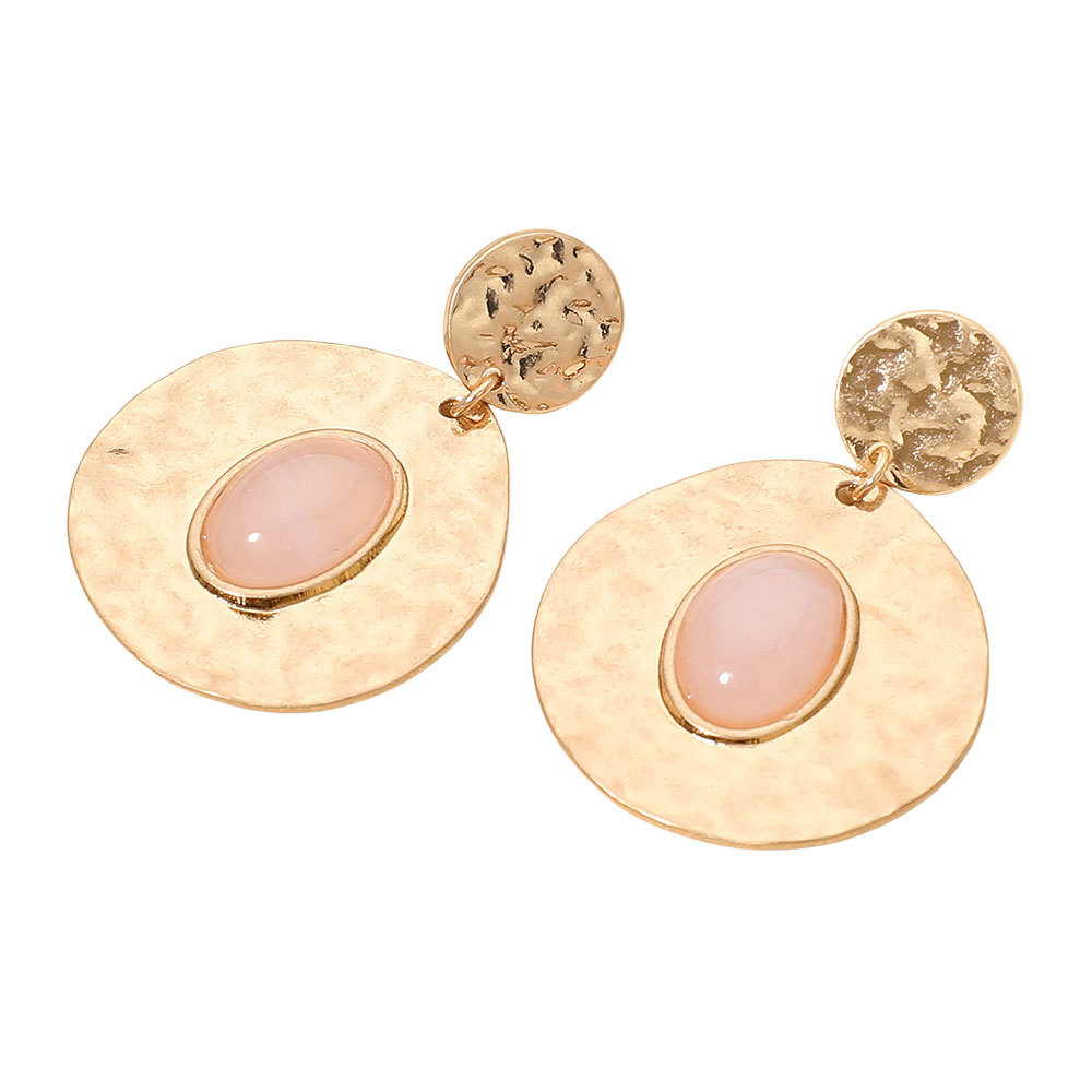 Oval Stone Center Hammered Disc Drop Dangle Earrings Oval Stone Center Hammered Disc Drop Dangle Earrings
