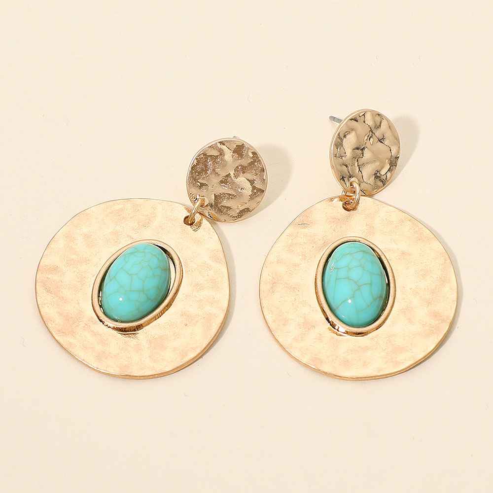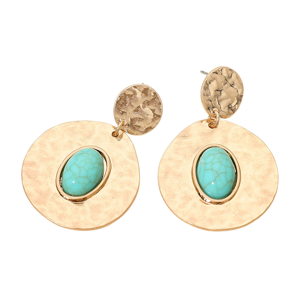 Oval Stone Center Hammered Disc Drop Dangle Earrings Oval Stone Center Hammered Disc Drop Dangle Earrings