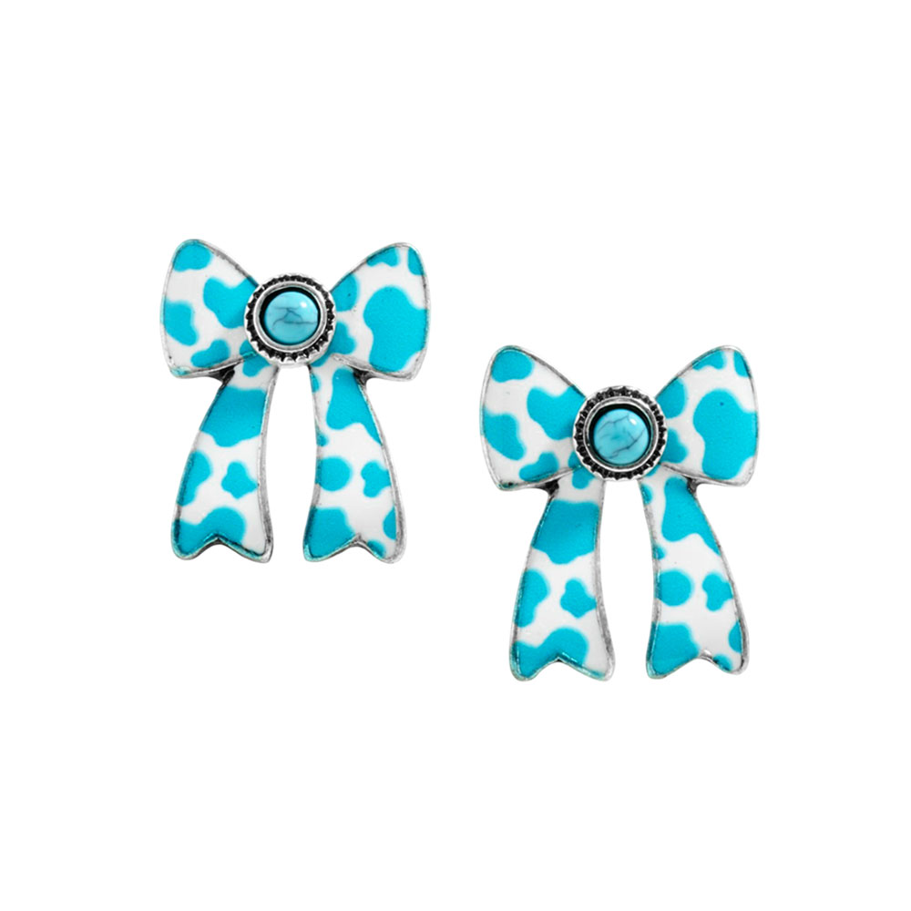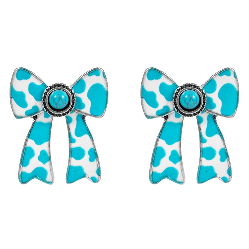 Oval Turquoise Stone Center Animal Pattern Print Western Bow Earrings Oval Turquoise Stone Center Animal Pattern Print Western Bow Earrings Oval Turquoise Stone Center Animal Pattern Print Western Bow Earrings
