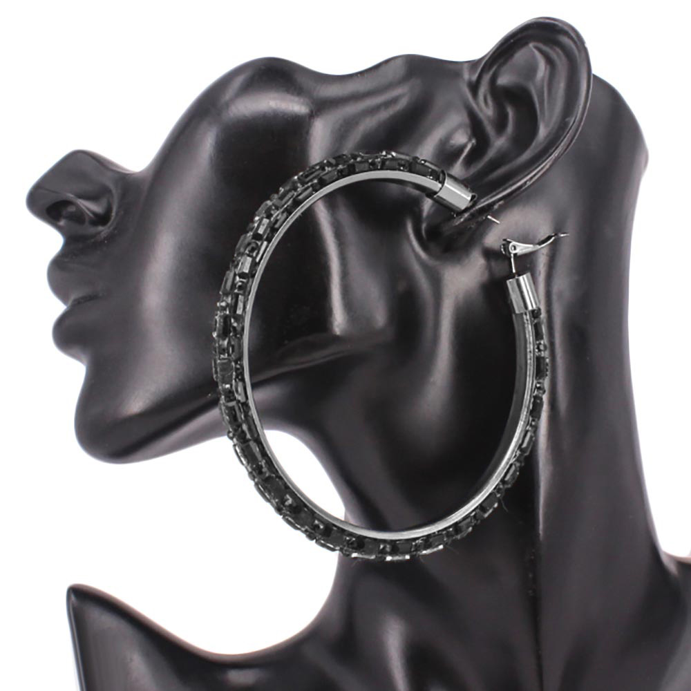 Oversized Baguette Rhinestone Embellished Hoop Earrings Oversized Baguette Rhinestone Embellished Hoop Earrings