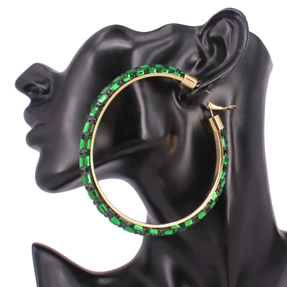 Oversized Baguette Rhinestone Embellished Hoop Earrings