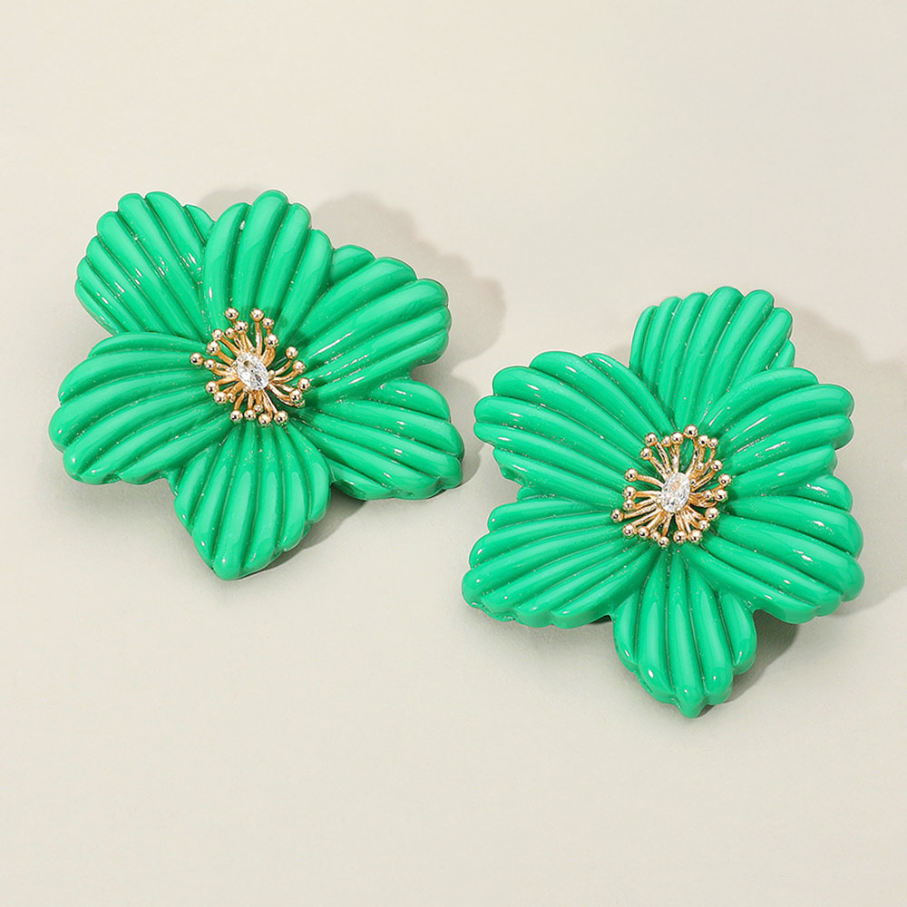 • Discover these statement floral earrings featuring a bold sculpted flower with a sparkling crystal center. Lightweight and stylish, they add a refined, timeless touch to any outfit, perfect for both everyday elegance and special occasions.
