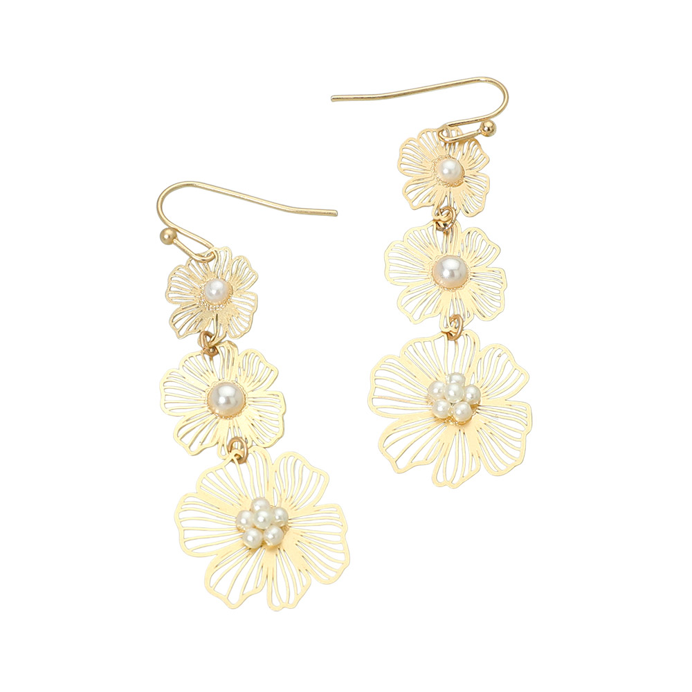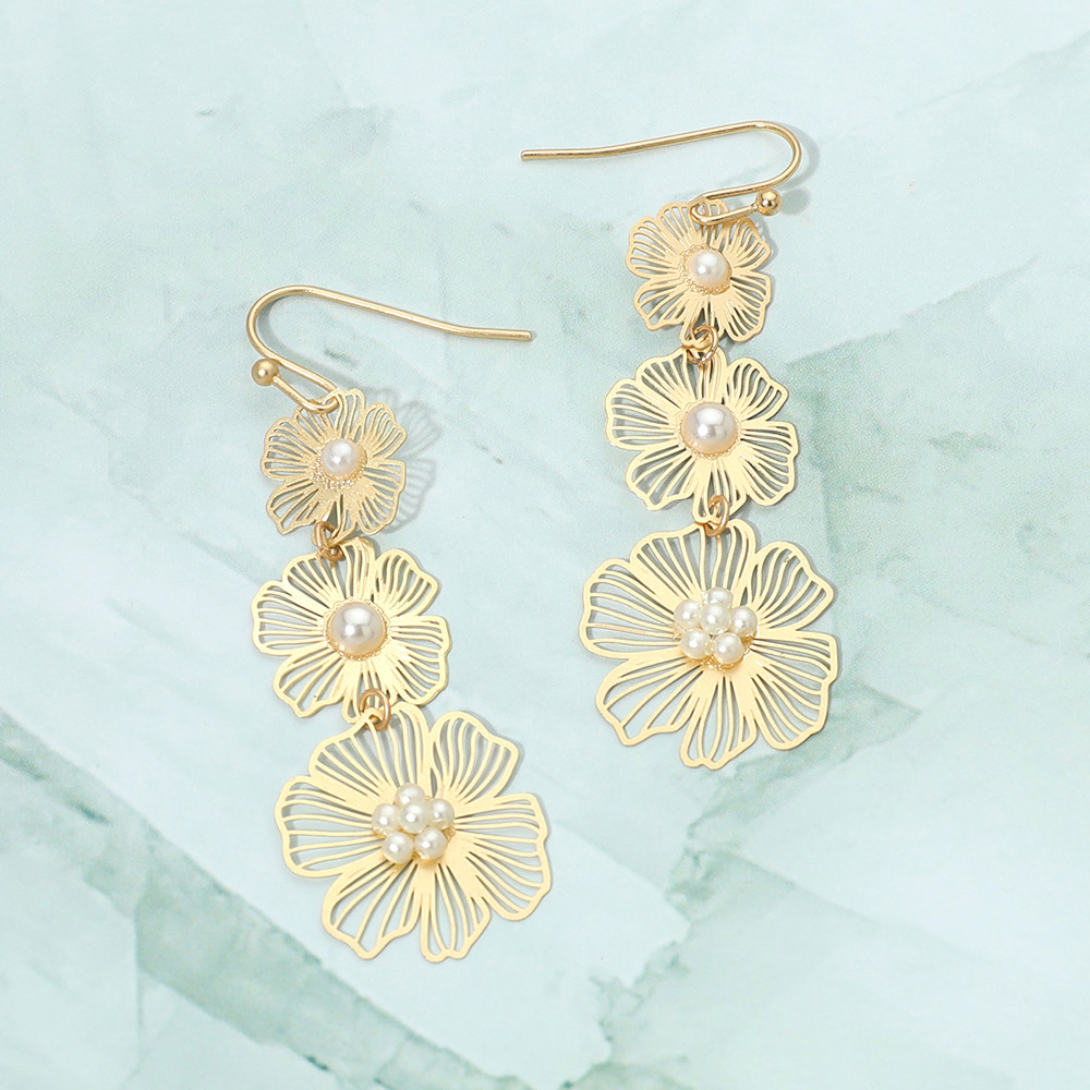 Pearl Accent Cutout Floral Link Drop Dangle Earrings Pearl Accent Cutout Floral Link Drop Dangle Earrings
