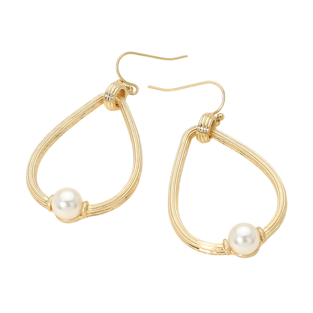 Pearl Accent Textured Chunky Teardrop Dangle Earrings Pearl Accent Textured Chunky Teardrop Dangle Earrings