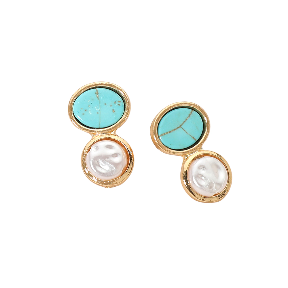 Details • Size : 0.5" X 0.8" • Post Back • These double circle stud earrings feature a balanced two-element design that blends a smooth round accent with an organic textured detail. Crafted for effortless styling, they offer a modern yet timeless look that transitions easily from casual wear to elevated outfits, making them a versatile addition to any jewelry assortment. • Lead and Nickel Compliant