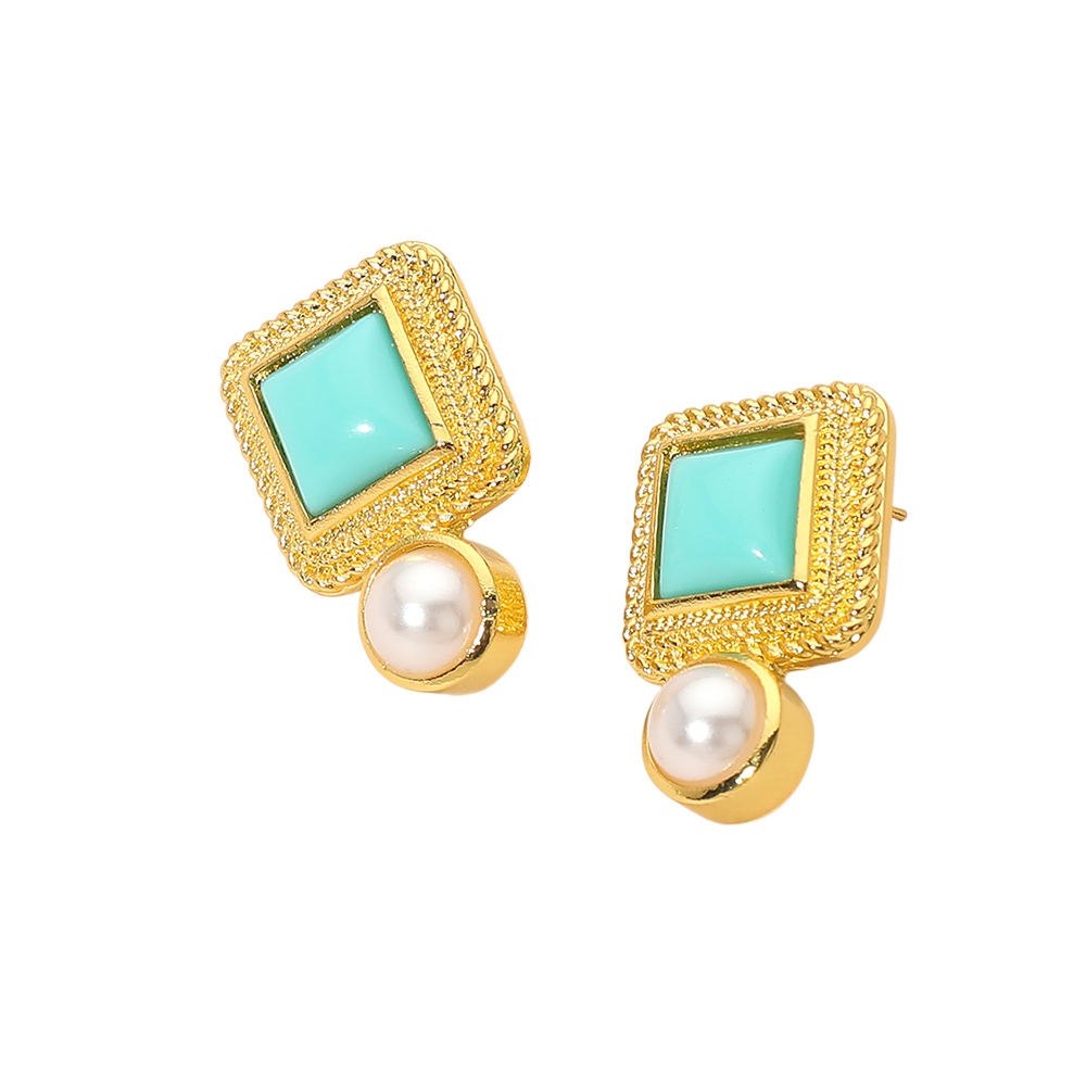 Details • Size : 0.7" X 1.1" • Post Back • These square accent stud earrings feature a structured geometric design paired with a classic round drop for a refined yet modern look. Designed to add subtle statement appeal, they transition effortlessly from everyday styling to dressier occasions, making them a versatile choice for curated jewelry collections and gift-ready assortments. • Lead and Nickel Compliant