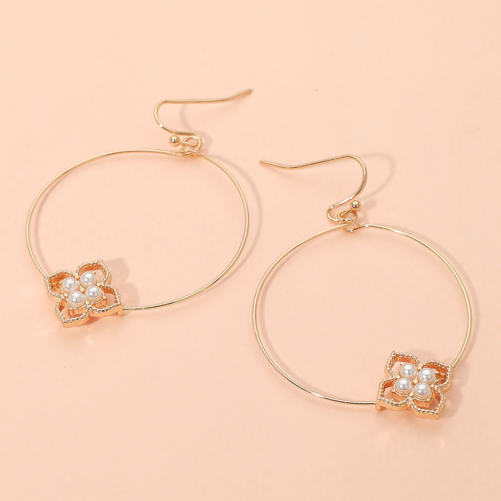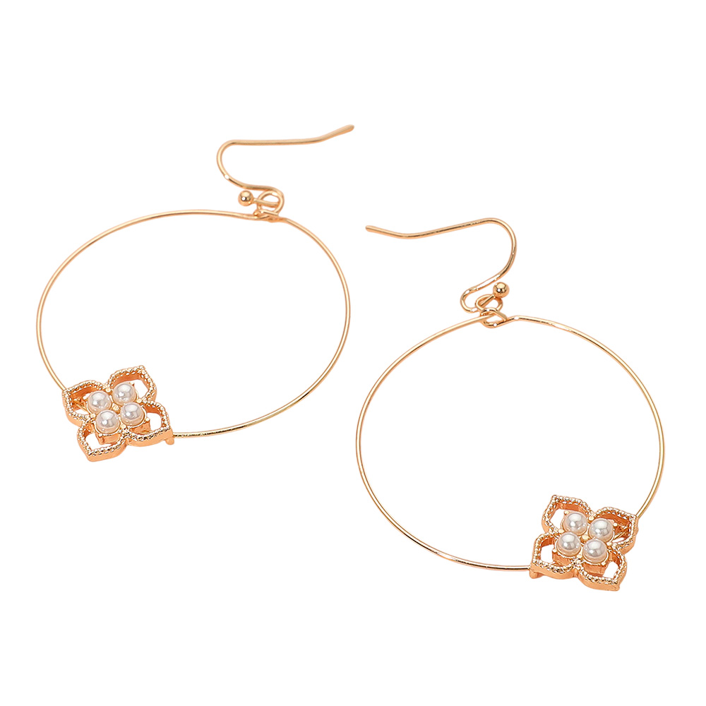 Details • Size : 1.5" X 2.25" • Fish Hook Back • Stylish hoop earrings featuring a refined floral design accented with petite beads. These lightweight earrings offer a chic and versatile look, perfect for elevating both casual and dressy outfits. A timeless accessory that adds subtle sophistication to any jewelry collection. • Lead and Nickel Compliant
