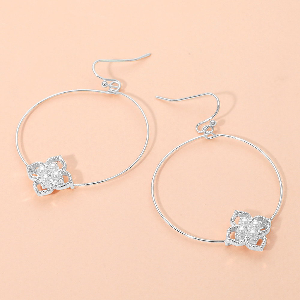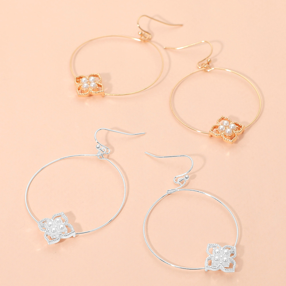 Pearl Floral Accent Hoop Dangle Earrings Pearl Floral Accent Hoop Dangle Earrings Pearl Floral Accent Hoop Dangle Earrings