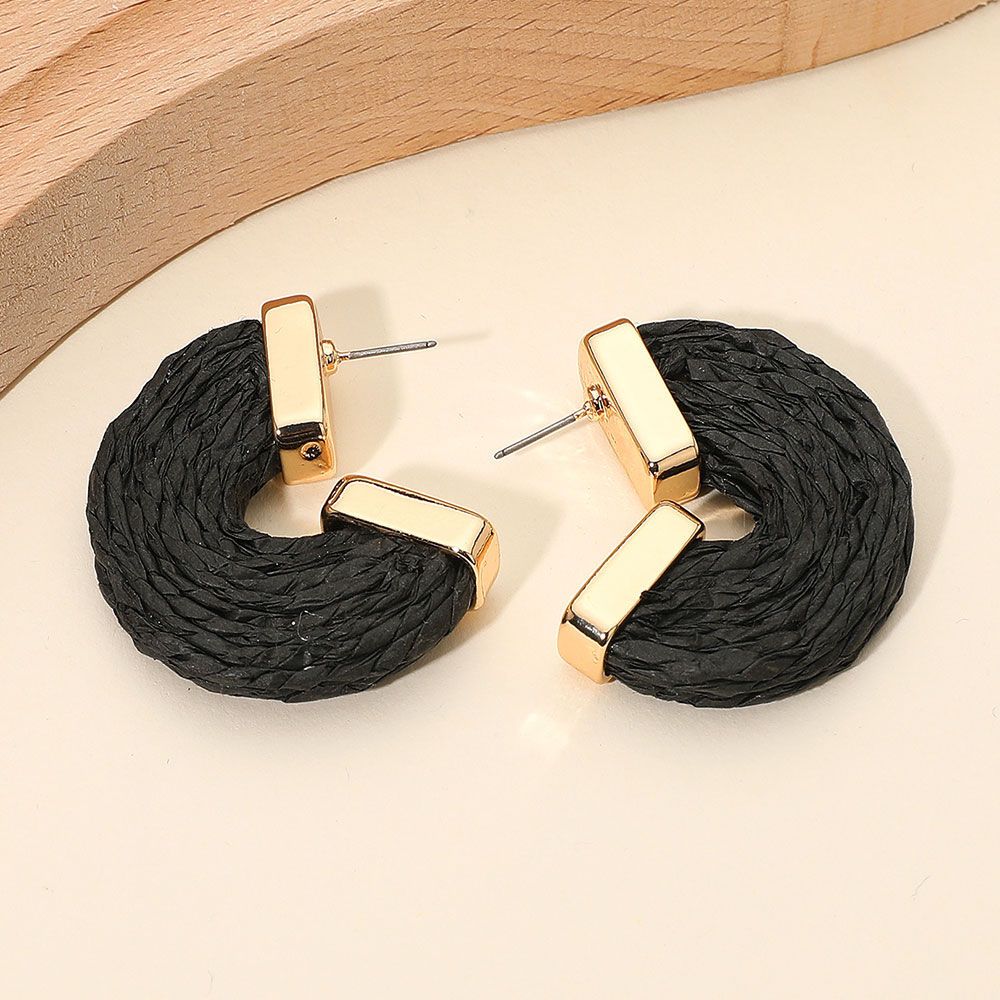 • Elevate your accessory collection with bold hoop earrings featuring a textured raffia braided design and polished accents. A versatile statement piece ideal for everyday styling or adding flair to evening and special-occasion looks.
