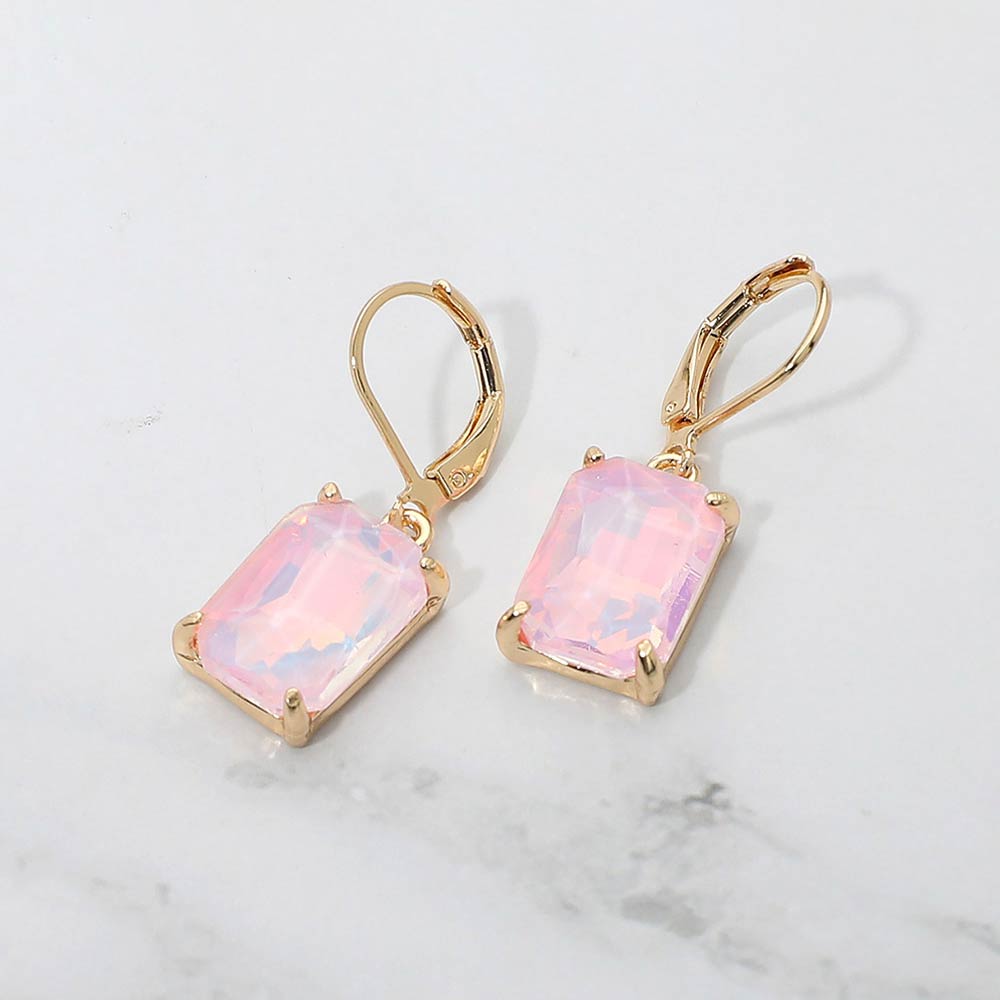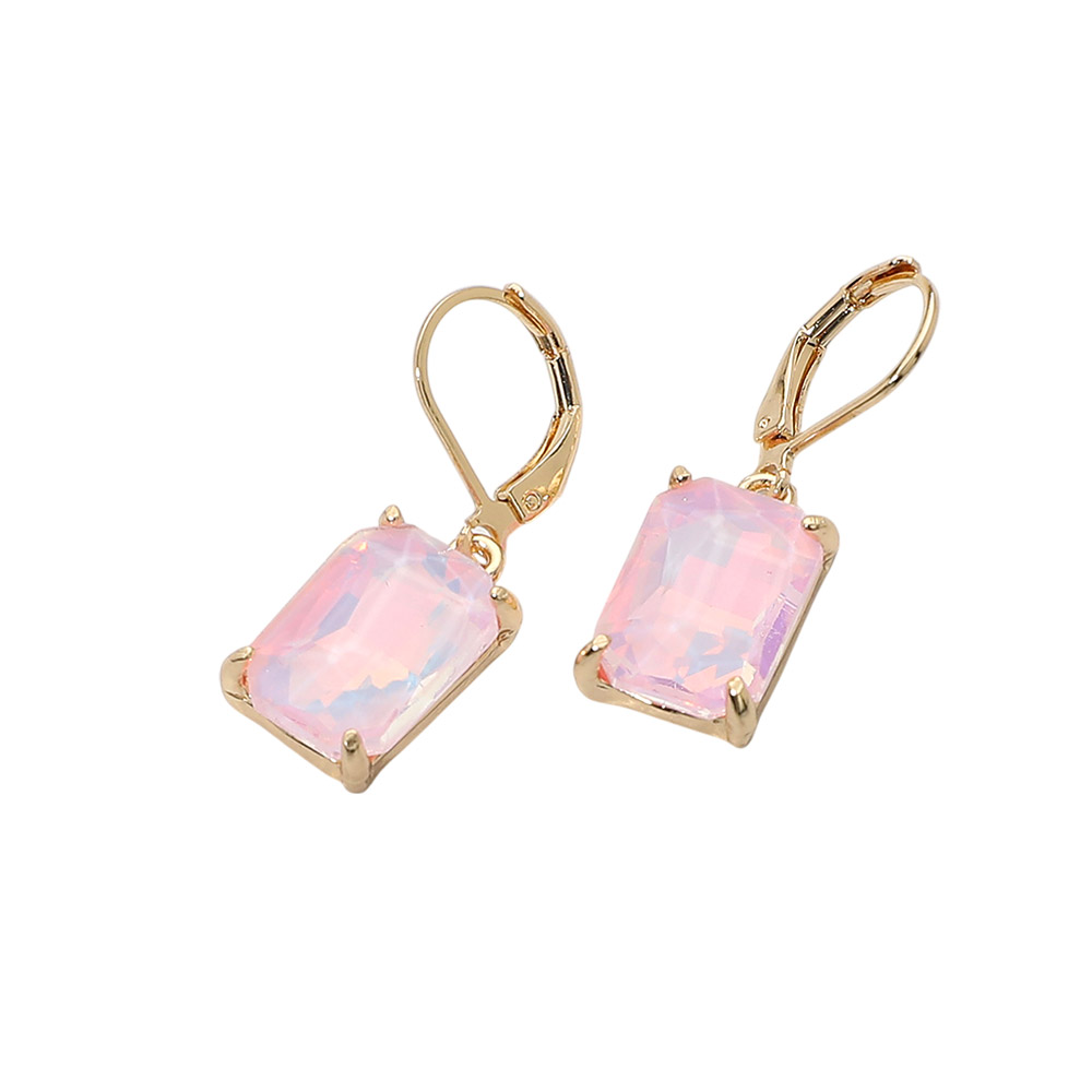 Rectangular Glass Stone Drop Dangle Earrings
