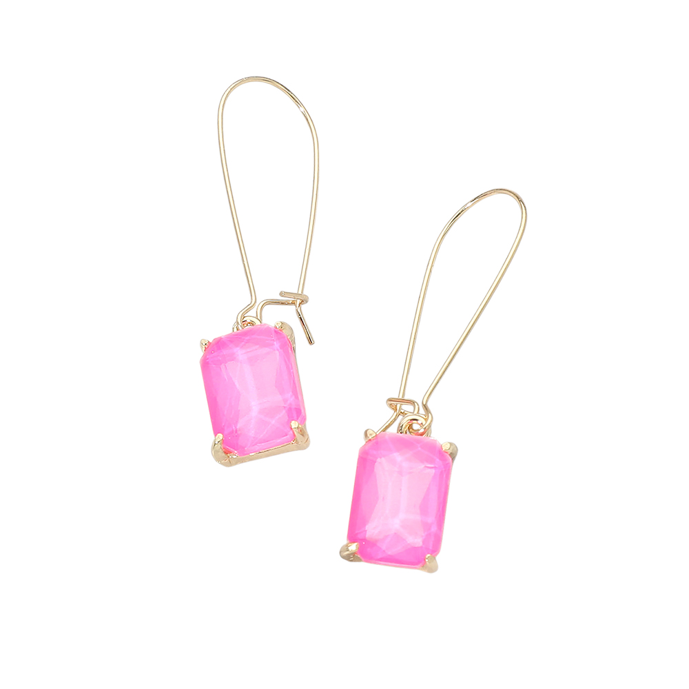 • Elegant drop earrings featuring a faceted rectangular stone suspended from a sleek hook silhouette. Designed to add refined sparkle and movement, this versatile style transitions effortlessly from daytime looks to evening wear, making it a strong addition to boutique jewelry selections, gift assortments, and trend-forward accessory collections.