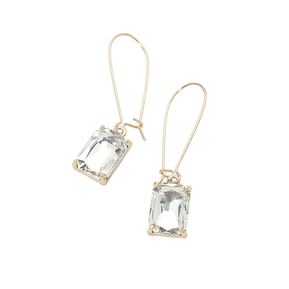 • Elegant drop earrings featuring a faceted rectangular stone suspended from a sleek hook silhouette. Designed to add refined sparkle and movement, this versatile style transitions effortlessly from daytime looks to evening wear, making it a strong addition to boutique jewelry selections, gift assortments, and trend-forward accessory collections.