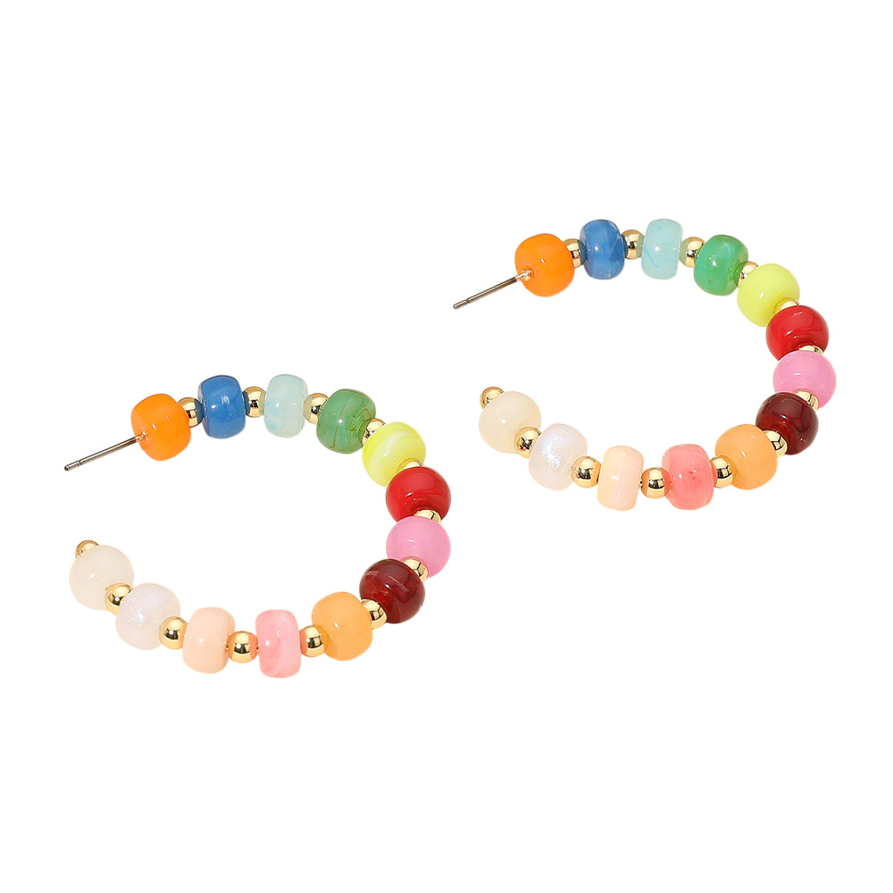 Details • Size : 2" X 2" • Post Back • Stylish beaded hoop earrings featuring glossy resin beads and gold-tone accents. Lightweight and comfortable for daily wear, these trendy hoops add a warm, modern touch to any outfit. Perfect for casual looks or gifting. • Lead and Nickel Compliant